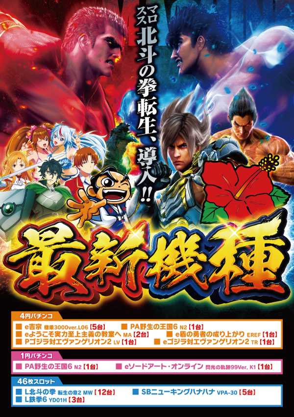 | 台 数 | パチンコ 622台 / スロット 426台 |