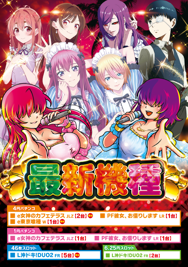 | 貸 玉 | パチンコ: [4] [1] パチスロ: [1000円/46枚][6.25][2.5] |