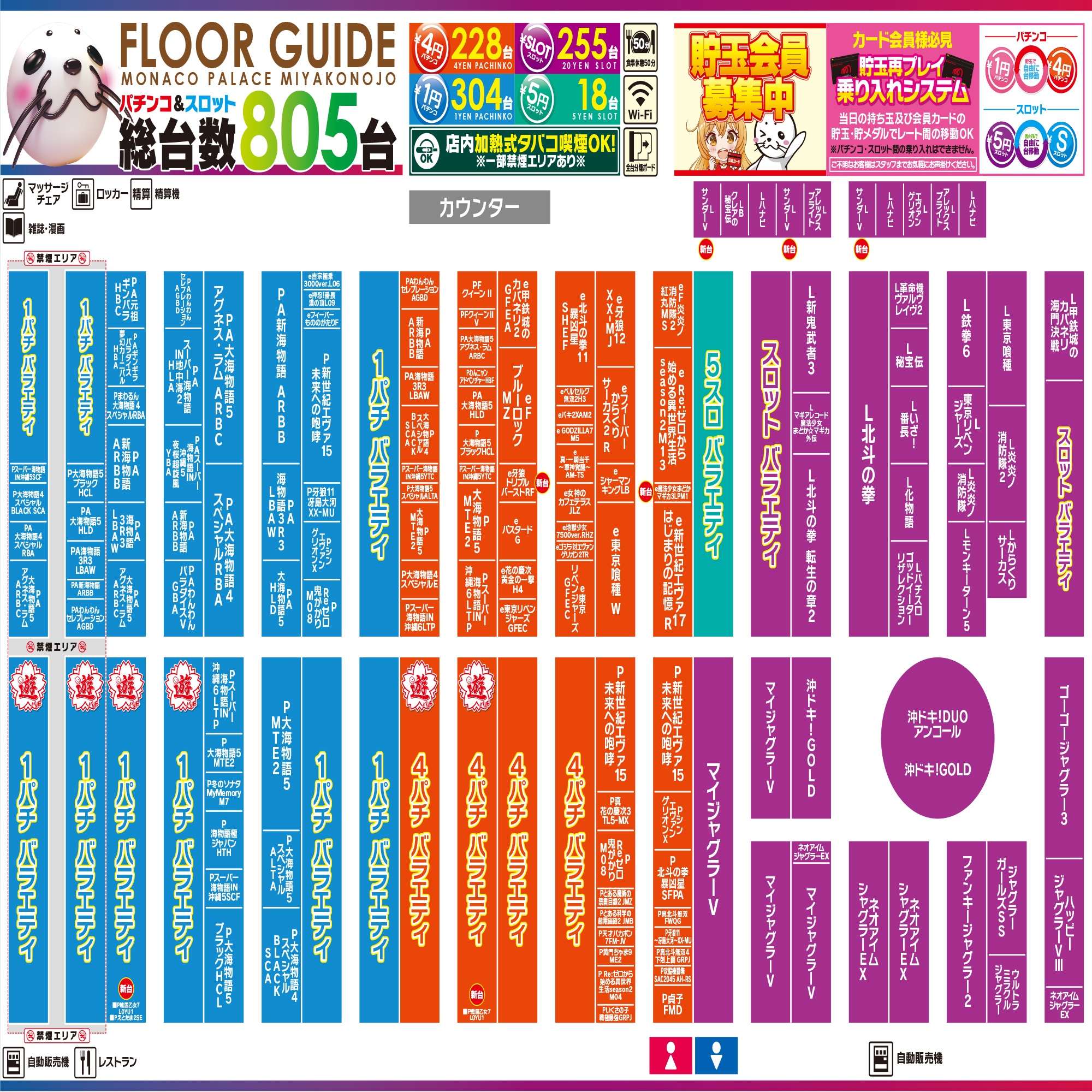 熊本県および宮崎県にてパチンコ遊技場「モナコパレス」「銀馬車」を運営しております。全23店舗、皆様のご来店をお待ちしております